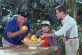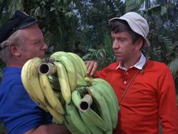 When the Skipper finds himself too weak to lift firewood which Gilligan and that the Professor carried off, he goes to the Professor for advice who gives him a physical. The Professor's finding is that a lack of Vitamin C from citrus fruits in the Castaways's diet will cause them to grow weaker by size. When Gilligan turns out to have an orange that will give them the vitamin they need, everyone wants it. He eventually decides to split between everyone, but the Professor realizes this is just a temporary fix, and they all start fighting over it again. Meanwhile, the orange dries up from the heat, and no one gets it, but the Professor still sees a chance to save themselves by planting the seeds. That night, Gilligan is left in charge to keep the seeds warm enough to prevent freezing at night, but he falls asleep anyway and dreams he is the title character in "Jack and the Beanstalk." Mrs. Howell is his mother who gives him the family jewels to buy oranges, but Mr. Howell is the con-man who gets him to give up the family jewels for magic seeds. Upset over what he has done, Mrs. Howell tosses the seeds out the window which grows into a beanstalk. Gilligan climbs it to the top and meets Mary Ann, the housekeeper of the Skipper as a giant. After freeing Ginger and the Professor, the giant's captives, Gilligan steals the giant's goose that lays oranges, but he gets caught and wakes up from the dream. While he's dreaming, the Professor has explored the other side of the island and found lemon and grapefruit trees. It seems Gilligan knew about them all along, but didn't know they were citrus fruit. Gilligan then opens a lemonade stand, but now that lemonade isn't in demand, he has no choice but to shut it down.